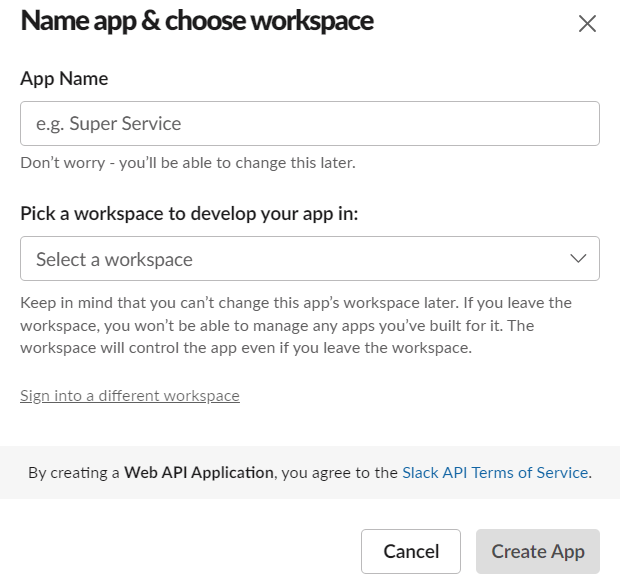 - From scrate 선택 -> App 이름과 적용할 workspace 선택 후 Crate App 버튼 클릭