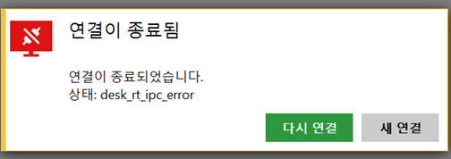 접속하는 노트북의 AnyDesk에서 아래와 같이 에러 메시지 출력됨